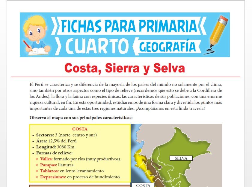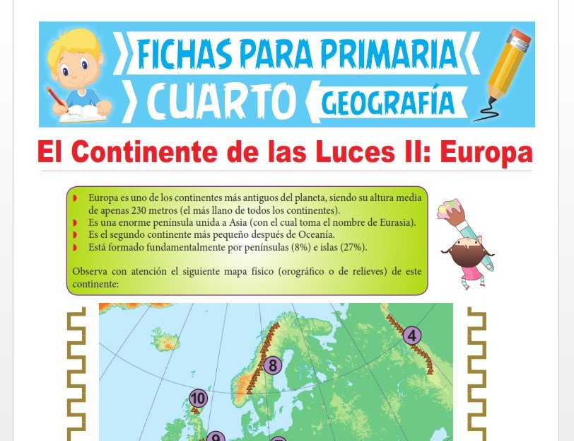 Aquí te compartimos 28 fichas de Geografía para Cuarto Grado de Primaria o niños que tengan 9 y 10 años. Estas fichas educativas contienen conceptos importantes y actividades educativas para desarrollar de cada tema y los podrás descargar en PDF de forma GRATUITA.