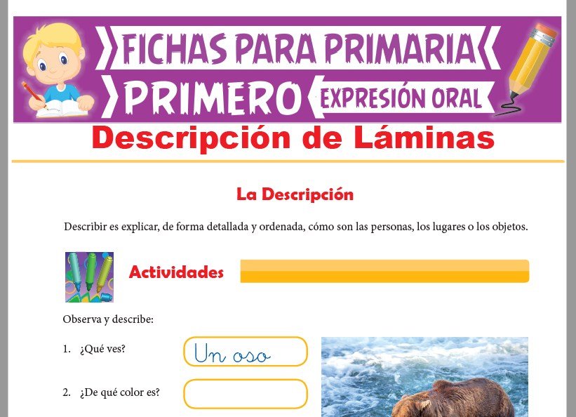Aquí encontraras 28 fichas de EXPRESIÓN ORAL para Primer Grado de Primaria o niños que tengan entre 6 y 7 años. Estos materiales educativos los podrás descargar GRATIS en formato PDF.