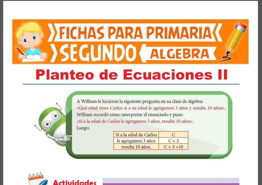En esta sección te mostraremos las separatas que contienen las actividades de álgebra para segundo grado que podrás descargar GRATIS¡Selecciona todas las fichas de álgebra que desees!.