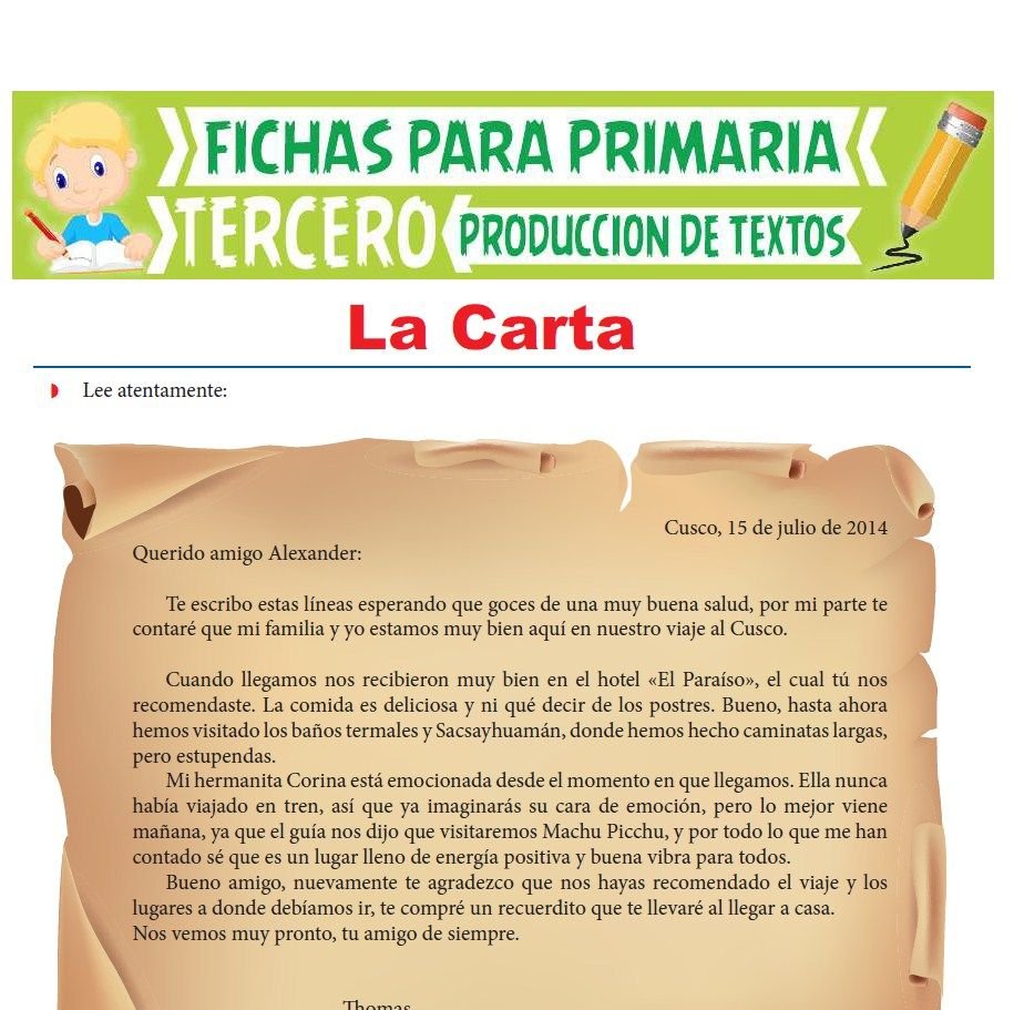 Esperamos que mediante estas actividades y ejercicios de producción de textos, los niños de tercero de primaria aprendan de forma divertida y recreativa. Te invitamos a seguir navegando por nuestro sitio web donde encontraras mas fichas educativas gratuitas de los demás grados y de todos los cursos.