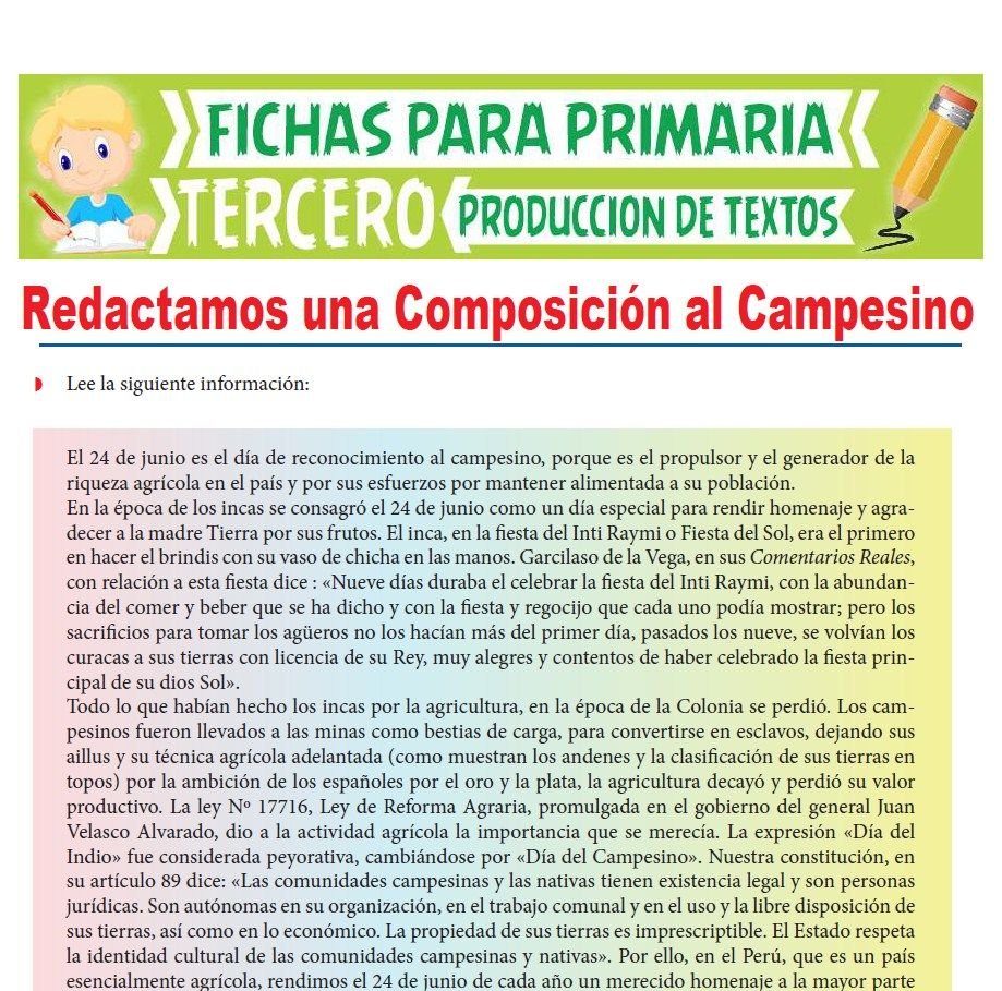 Todas las actividades y ejercicios de producción de textos están contenidas en las fichas educativas que veras a continuación, ¡Puedes seleccionar y descargar todas las fichas que quieras!.